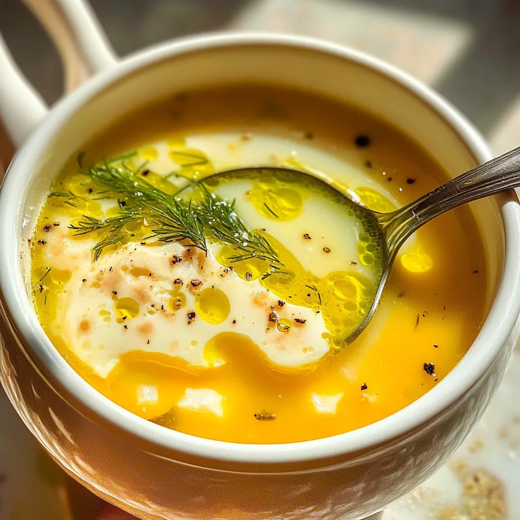 Ladle the soup into bowls while still warm. Sprinkle fresh dill over the top, add a drizzle of olive oil, and finish with freshly cracked black pepper. The bright green dill contrasts beautifully with the creamy yellow soup, and the olive oil adds a subtle richness that makes each spoonful luscious.