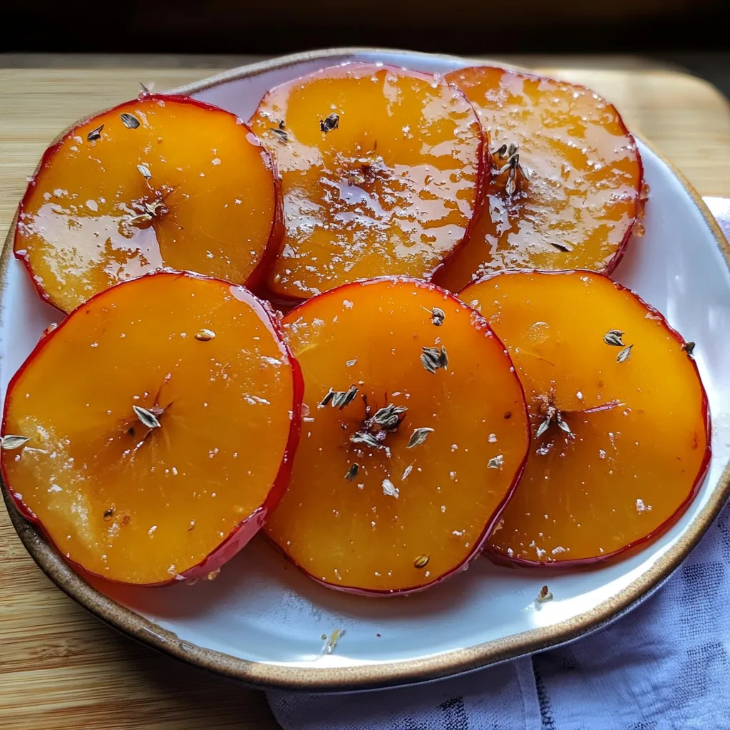 There’s something deeply comforting about the crackle of caramelized sugar meeting the crispness of fresh apples. These Candied Apple Slices are a refined twist on the classic fairground treat—simpler, thinner, and more elegant, with just a hint of salt and thyme to balance the sweetness.