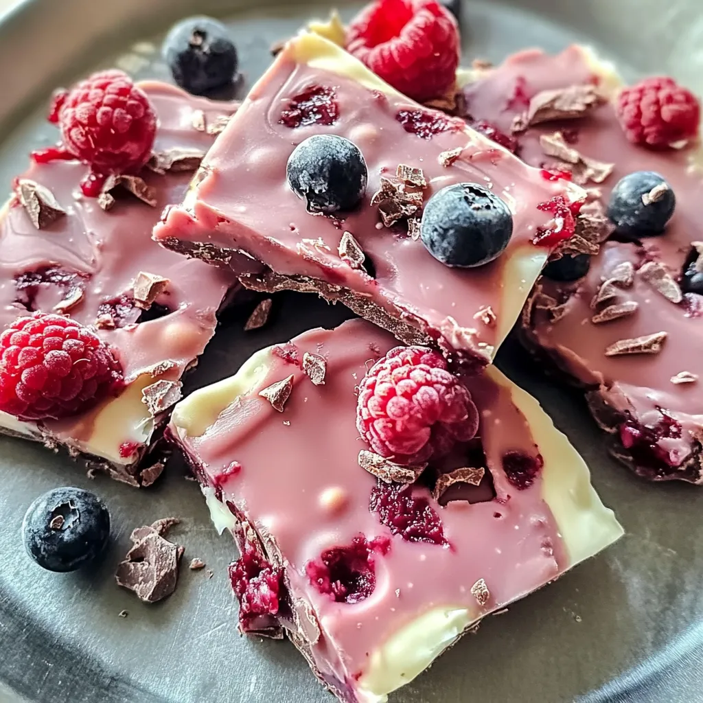 What makes it so special is the combination of textures. The tangy Greek yogurt sets into a frosty base, the dark chocolate hardens into a satisfying crunch, and the raspberries burst with brightness in every bite. Add a handful of nuts for that extra snap, and you’ve got a snack that’s as beautiful as it is delicious.