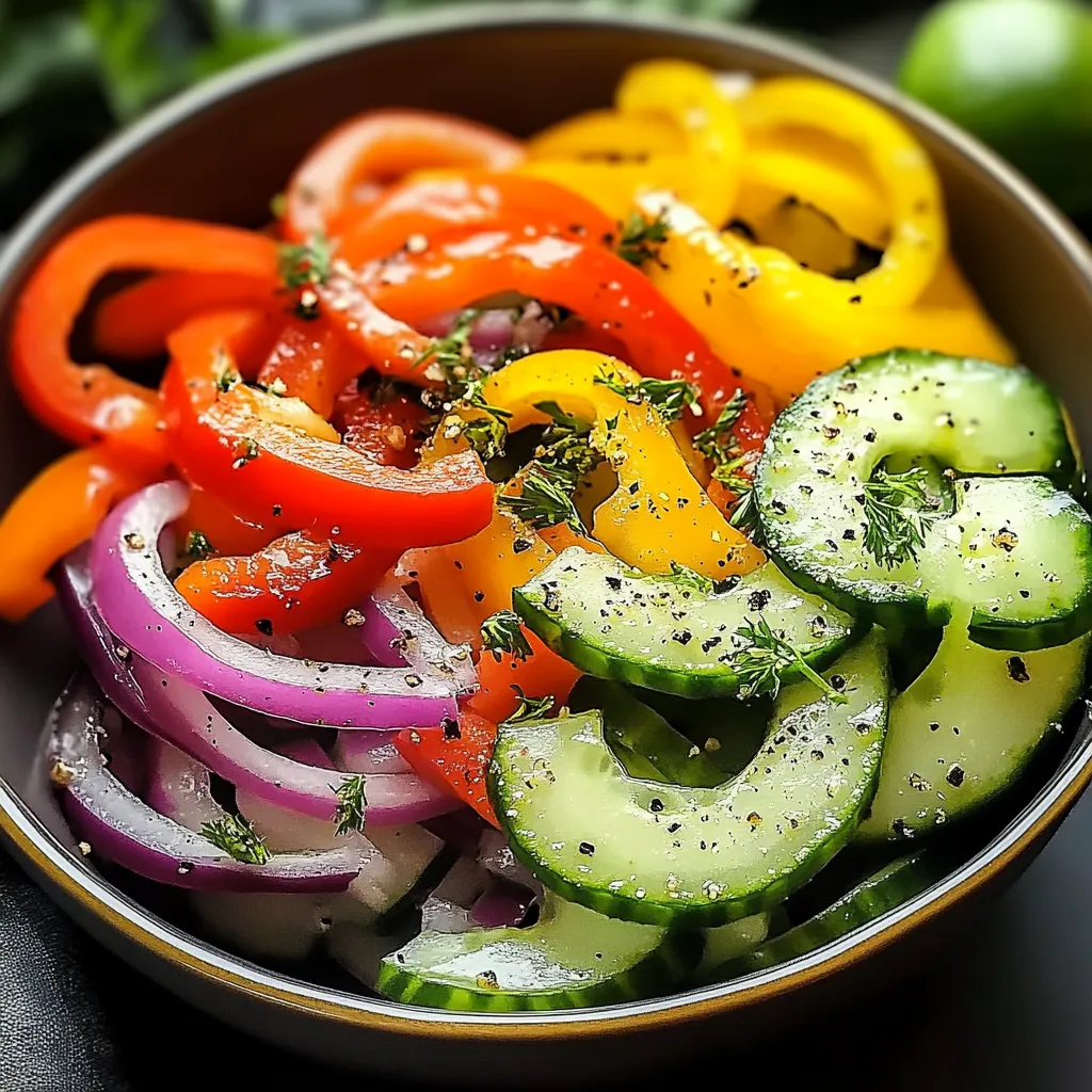 Freshness is key here. Choose firm cucumbers and vibrant peppers—they bring the best flavor and crunch.