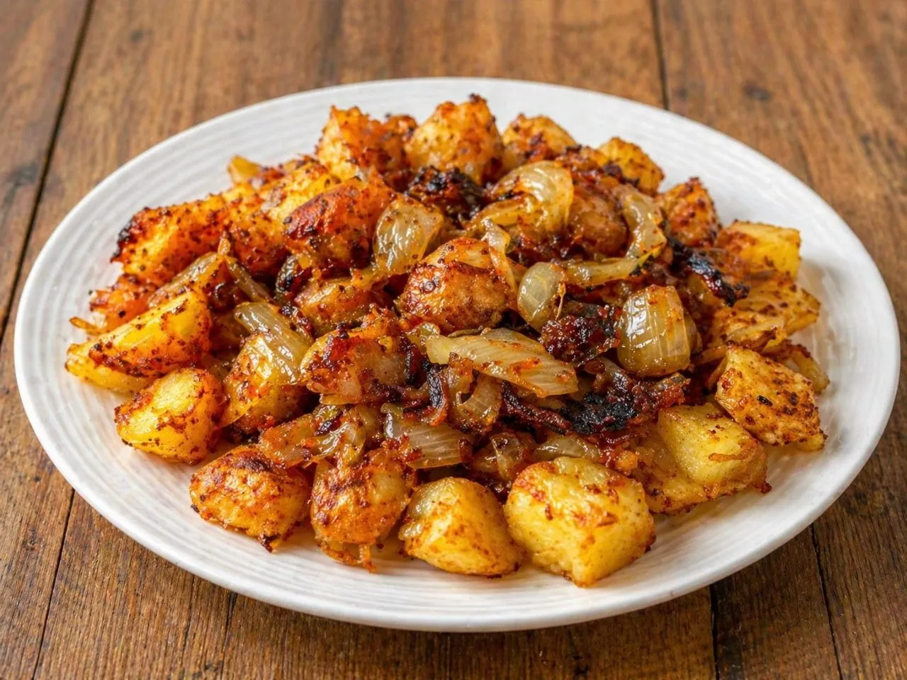 The contrast in this dish is what makes it so good. The potatoes are crispy on the outside and soft inside, while the onions add a gentle sweetness that balances everything out. The smell is warm and savory, with hints of garlic and paprika if you use it.