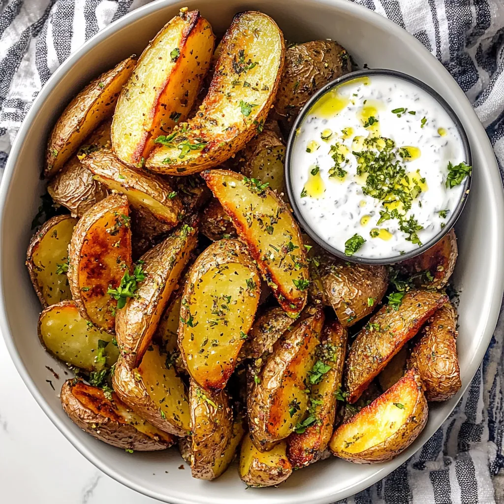 Serve the wedges warm alongside a creamy yogurt sauce. The combination of crisp, herby potatoes with cool, tangy yogurt is irresistible. For storage, let leftovers cool completely and place them in an airtight container in the fridge. Reheat in the oven to bring back some of the crispiness—they taste almost as good the second day!