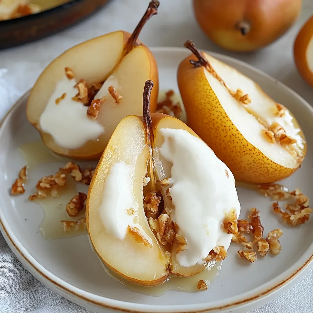 Serve these baked pears warm, straight from the dish. They pair beautifully with yogurt for a lighter option, or with vanilla ice cream if you want something more indulgent. Granola on top adds a lovely contrast in texture.