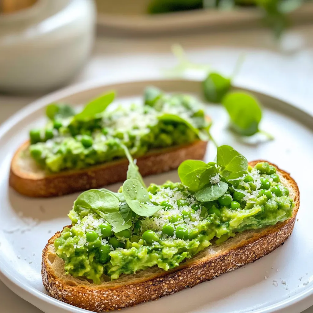 For a richer spread, try blending in a spoonful of ricotta. If you like heat, a pinch of chili flakes on top adds a gentle kick that works surprisingly well with the sweet peas.