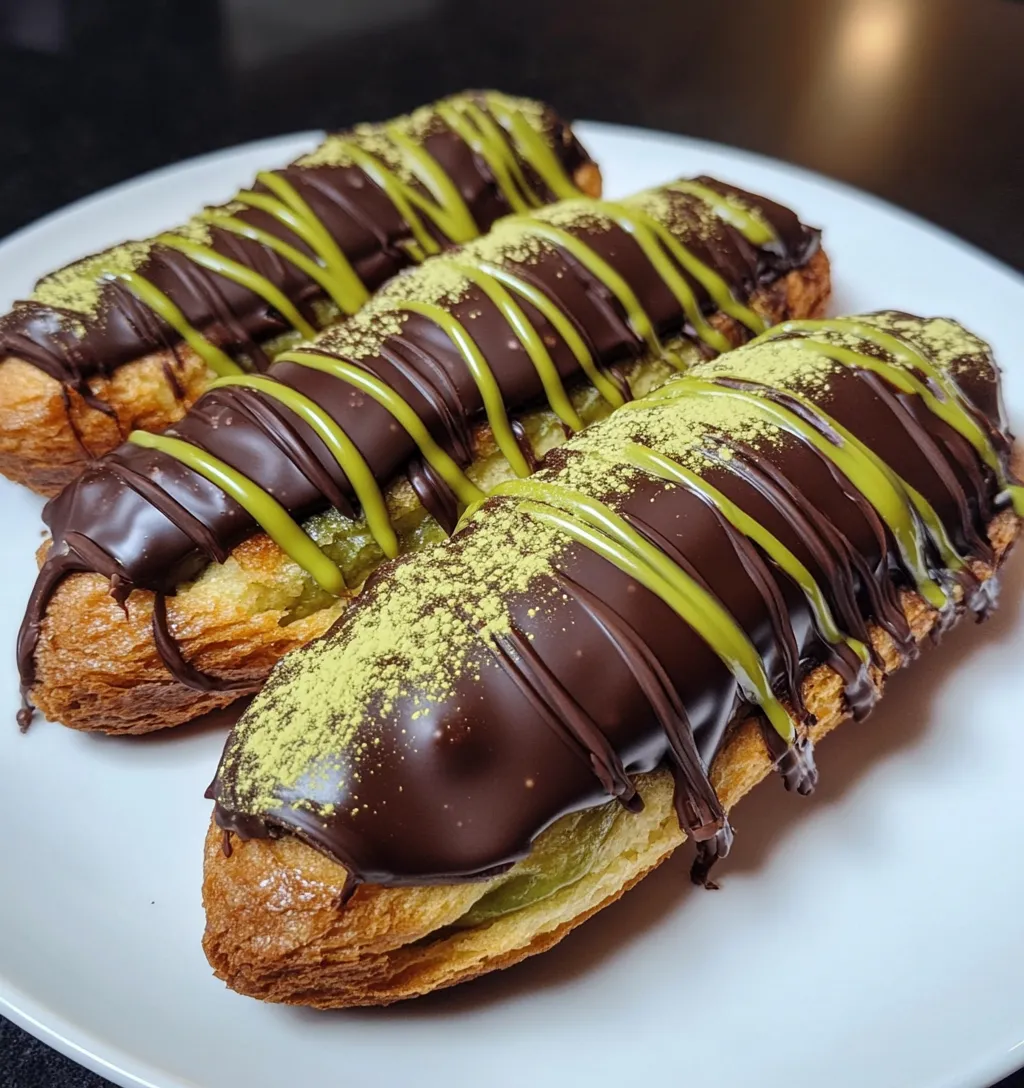 Dubai is known for its indulgent desserts, and these pistachio chocolate éclairs are a perfect example. They combine delicate French pastry techniques with rich Middle Eastern flavors, making every bite feel decadent and exotic. I remember the first time I tried something similar in a Dubai café—the balance of crisp choux, creamy pistachio filling, and glossy chocolate glaze was unforgettable. Recreating it at home feels like bringing a little slice of that experience into your kitchen. The aroma of warm pastry and chocolate fills the room instantly, and you can’t help but feel a little fancy while baking them.
