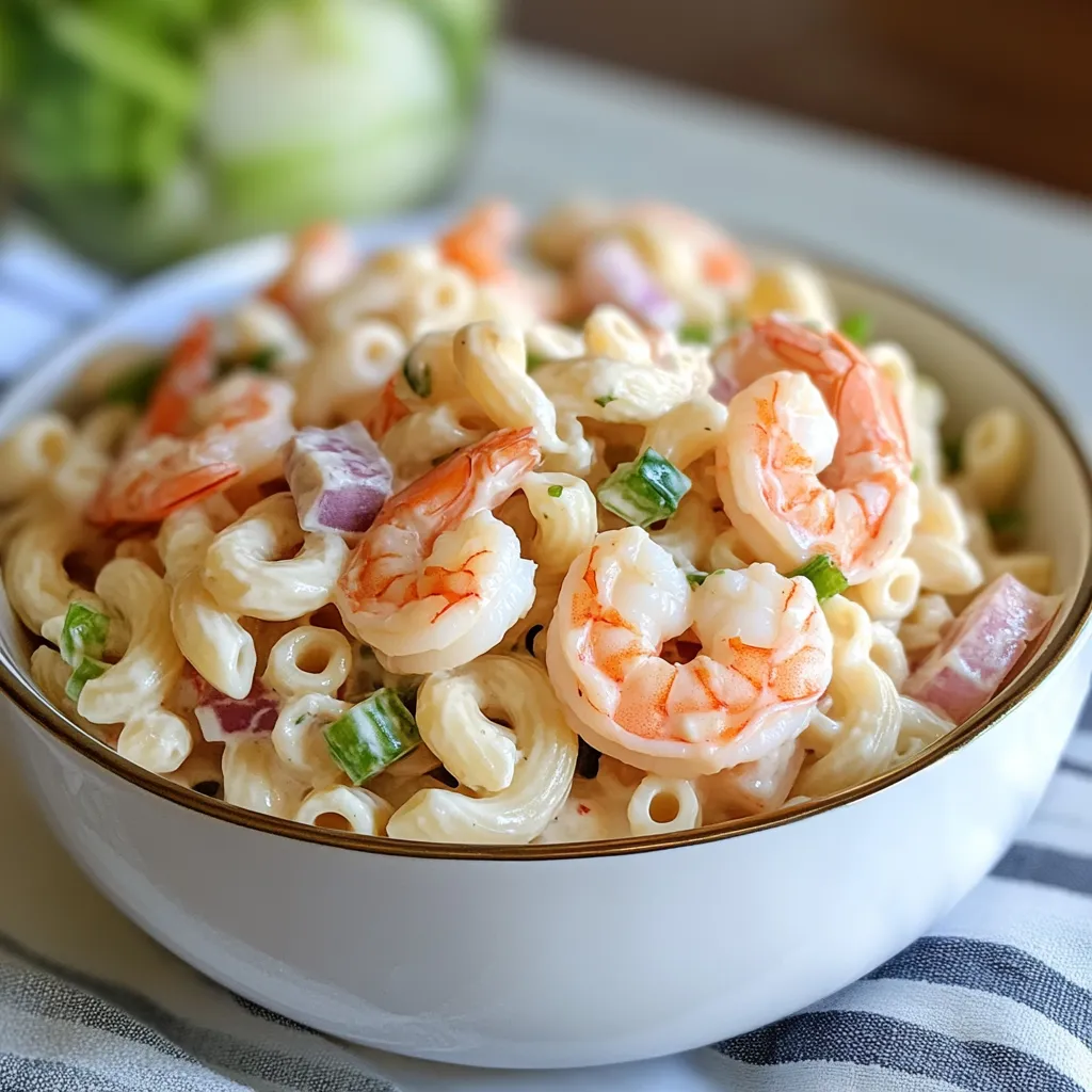 This salad offers a good mix of protein from the shrimp and carbohydrates from the pasta, making it more satisfying than many side salads. The vegetables add fiber and crunch, while the creamy dressing keeps it comforting and indulgent without being overwhelming.