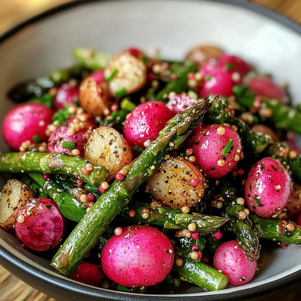 This is one of those recipes I come back to again and again, especially when I want something fresh but still comforting. Roasting completely transforms radishes, mellowing their sharp bite into something almost sweet, while asparagus turns tender with crisp, golden edges. The mustard vinaigrette pulls everything together with just enough tang to keep each bite interesting.