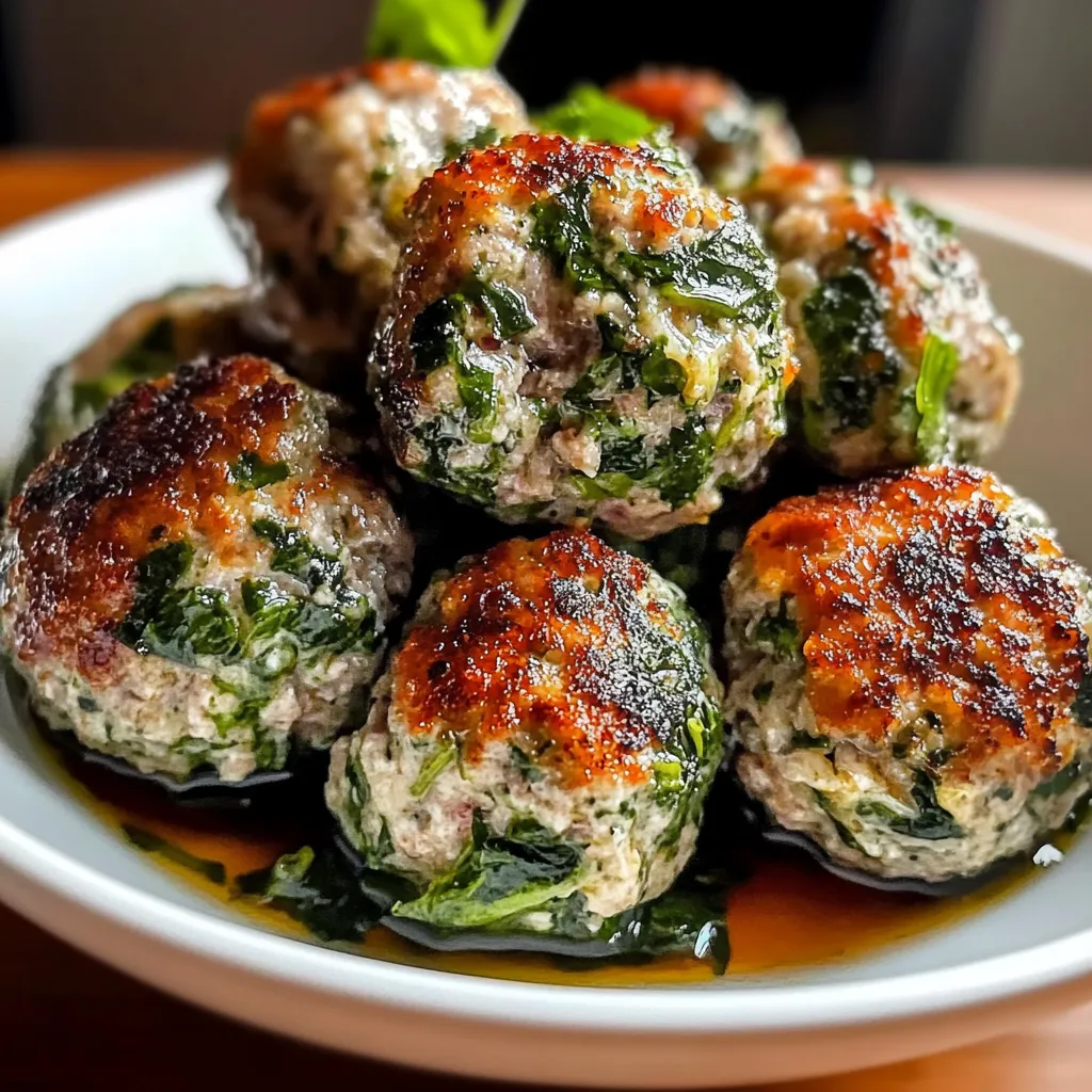 You have two great options for cooking: baking or pan-searing. To bake, place the meatballs on a greased baking sheet and cook until golden and cooked through. For pan-searing, heat a little oil in a skillet and brown each side evenly, making sure the center is fully cooked. The sizzling sound and smell of garlic, spinach, and meat is one of those irresistible kitchen moments that makes you feel like a pro chef.