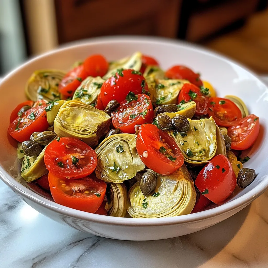 This Tomato and Artichoke Salad is naturally light and nutrient-rich. Tomatoes provide antioxidants, artichokes add fiber, and olive oil brings healthy fats. It’s a dish that feels indulgent while still being wholesome and balanced.